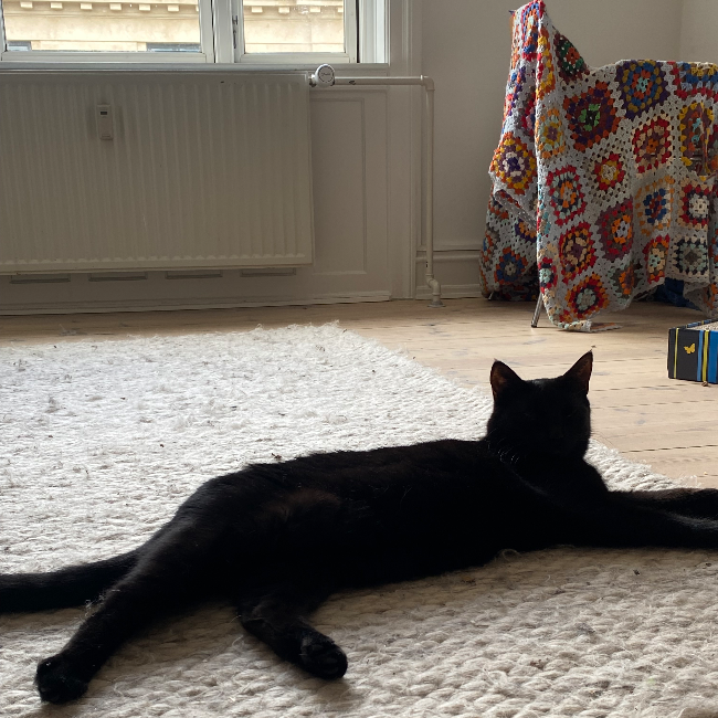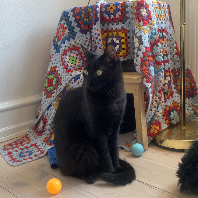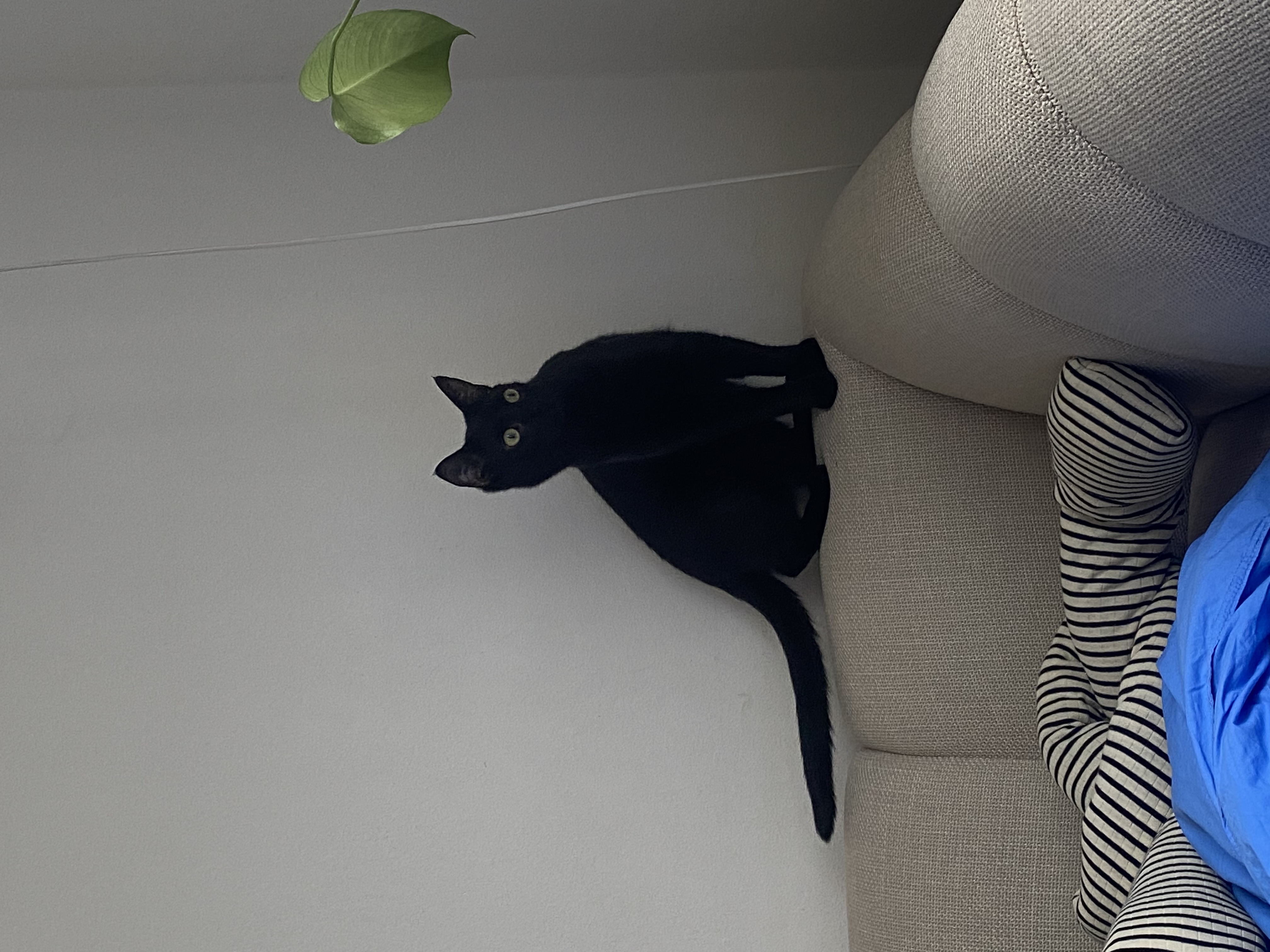 Kalle (sort) født August 24 Kalle er en mageløs sort kat - han er utrolig selvstændig men giver mange anledninger til grin og varme i vores hus. Han er den eneste af de tre der ikke vil røres endnu - hvilket også er hvorfor vi synes han skal ud med en af sine søskende, eller potentielt en anden kat, der kan lære ham at blive mere social. Selvom han ikke vil røres (man kan snige sig til at stryge ham over ryggen, men så løber han ofte væk) er han ALTID i nærheden af os, og på mange måder den mest modige af de 3. Han ligger altid og sover i samme rum som vi befinder os, og vi kan gå helt tæt forbi ham uden han bliver bange. Han har også meget killingeenergi tilbage, og løber efter de andre to om aftenen for at lege tagfat. Vi tror potentielt at han kunne blive en udekat på længere sigt - da han virkelig kan brænde noget krudt af., men det vides også at han bliver roligere med alderen. Han vil gerne spise flydende mad fra hånden, men tørfoder har han en tendens til at prøve at ‘vappe’ ud af ens hånd med sin klo - så det skal trænes med tålmodighed og måske en handske. Kalle er klart en kat med specielle behov, men han er virkelig også skøn og social og sjov. De 3 søskende Filur, Kalle og Ida, de er klar til at komme ud til nogle kattevante og tålmodige familier uden små børn. Der går et par timer, før de kommer ud fra deres skjul når vi får gæster, så derfor skal man være tålmodig og have god tid ved besøge. De ville elske at komme ud samme alle 3, men ikke et krav.. Der er dog et krav at der skal være mindst en rolig kat mere i hjemmet.