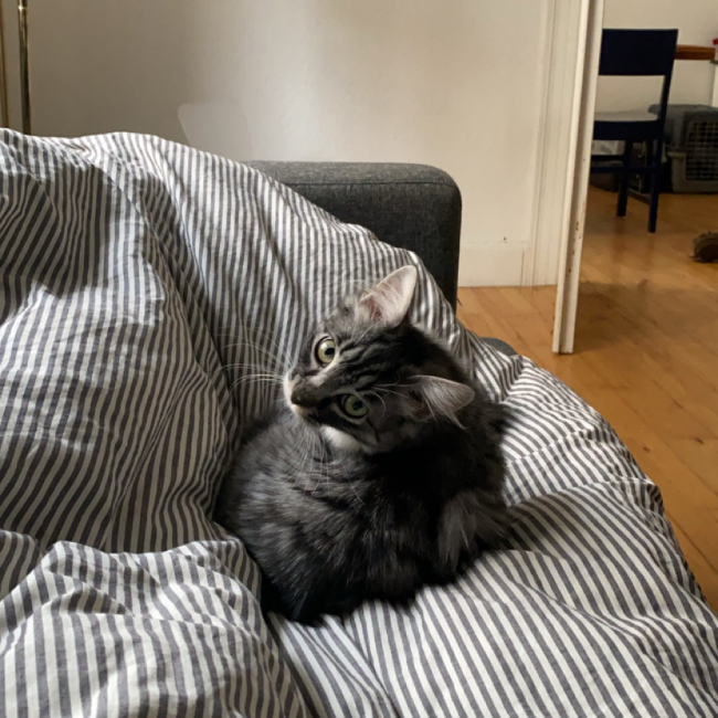 Ida (grå med hvid) fra August 24 , er en smuk og forsigtig pige, der elsker at blive nusset, når hun er tryg. Hun kan næsten ikke spise før hun har fået nusset godt igennem, og er helt oppe på tåspidserne for at blive kælet ordentligt. Hun er let at skræmme med lyde, men bliver også hurtigt god igen. Hun skal helst nusses på egne præmisser, men er begyndt at opsøge os ved sofakanten når hun gerne vil have opmærksomhed. Vi er begyndt at øve at samle hende op, hvilket ikke skræmmer hende så meget, men man kan ikke holde hende i længere tid. Vi tror, hun bliver et rigtig hyggemonster, når hun finder sin forever-family. Hun spiser gerne snacks af hånden. De 3 søskende Filur, Kalle og Ida er klar til at komme ud til nogle kattevante og tålmodige familier uden små børn. Der går et par timer, før de kommer ud fra deres skjul når vi får gæster, så derfor skal man være tålmodig og have god tid ved besøg. De ville elske at komme ud sammen alle 3, men ikke et krav.. Der er dog et krav at der skal være mindst en rolig kat mere i hjemmet.