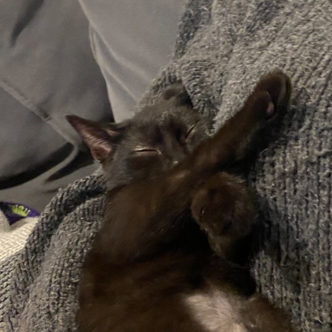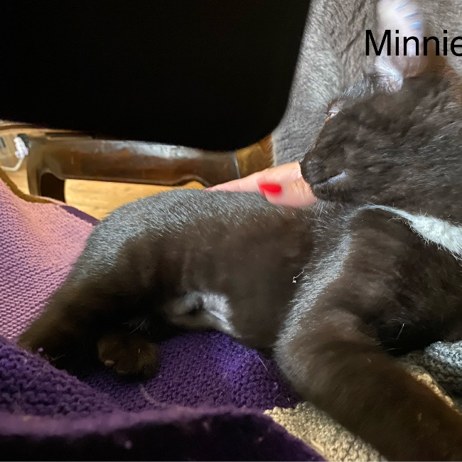 Minnie født 11 maj 2025 Skøn lille misse-pige med helt sin egen personlighed. Glad og spindende. Leger godt med sine mennesker og plejemors andre katte. Følger gerne med rundt i hjemmet og vil meget gerne tages op og kysses. Snakker lidt. Kommer når man kalder. Ligger gerne i arm og på skødet. Roligt og mild. Skøn lille pige. Er vant til katte-vante børn fra 5 års alderen.