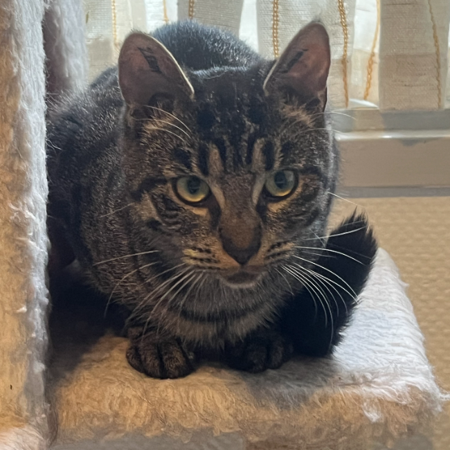 Gråmis er en af de 4 katte, som blev dumpet i papkasser i Dragør. Hun vurderes til at være omkring 2-3 år og vi mener hun er mor til de 3 andre. Gråmis er en helt almindelig huskat, som dog lige skal lærer dig at kende, men ellers kælen og sød. Pt er hun lidt på over for sine killinger, hvilket er helt normalt, men er sikker på at hun blomstre, når hun får sit eget hjem. Hun er neutraliseret mm, og klar til at finde sit forever home, hvor man ikke finder på at dumpe sin kat.