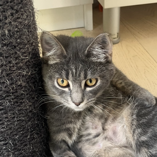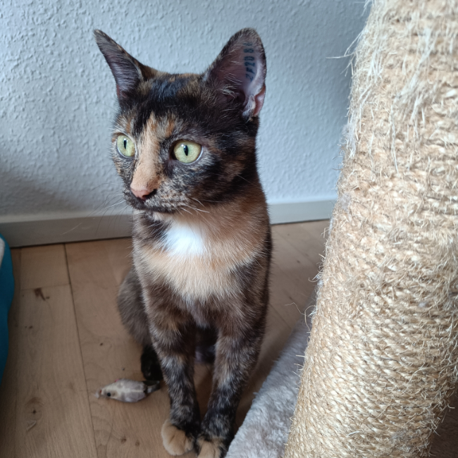 Musse født ca 25/2-23 er en blid, forsigtig og nysgerrig pige. Supercharmerende med sin egern hale. Hun er renlig. Tryg ved kontakt, når hun har set folk an og det at være indendørs. Hun har et naturligt forhold til mad. Hun spiser dås...