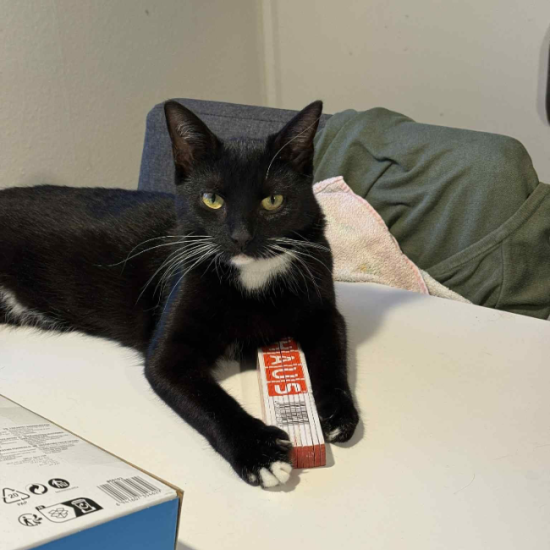 Milo er en charmerende ung kat på ca. 1–1,5 år med det fineste sort-hvide tuxedo-look. Han er nysgerrig, legesyg og social – og han elsker at være tæt på sin bedste ven, Snehvide, som han meget gerne vil flytte sammen med. Milo har tidli...
