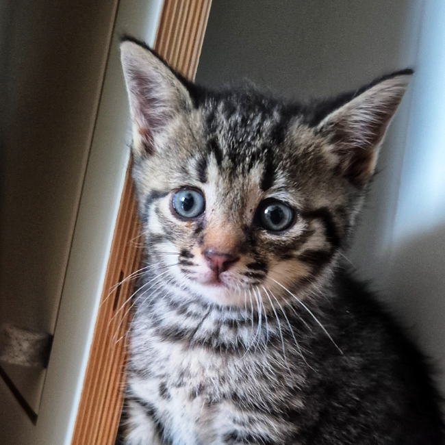 Lola er ved første øjekast en lille forsigtig kat, der nok skal fortælle dig, når hun vil have selskab. Hun er den mindste i sin søskendeflok, men elsker at lege og vil meget gerne gøre det sammen med dem. Derfor egner hun sig nok også bedst til at komme ud til en anden kat eller ende sammen med en af sine søskende.