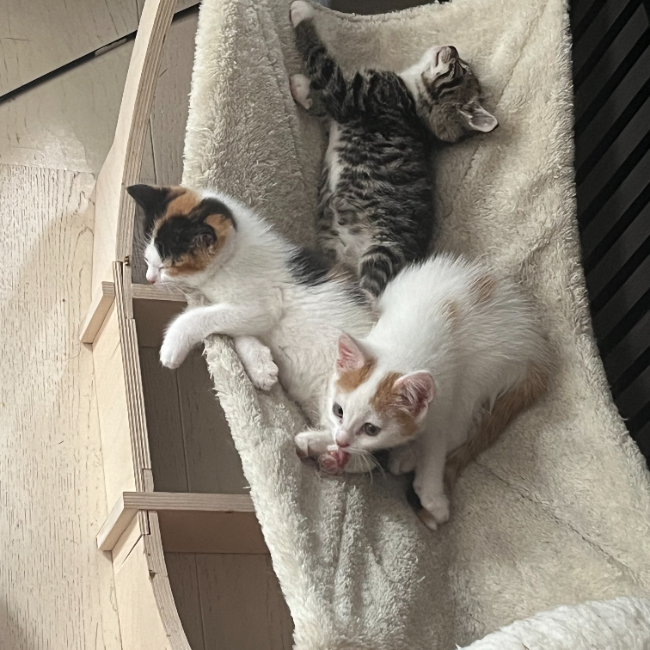 Lina skal ud med sin søster Ida, og de ville elsker at have deres bonus bror Emil med. Det er søde kærlige killinger med gang i den, og de kommer gerne og putter i sengen. Lina har bare en super sød personlighed, og ligner lidt et marsvin på farverne. Lina og Ida blev fundet, ikke ret gamle, i en grøftekant, sammen med 3 søskende der ikke havde klaret det, og ingen mor i miles omkreds, dette kan man heldigvis ikke mærke på dem i dag, de er fuld af livsmod og ballade.