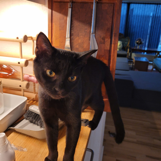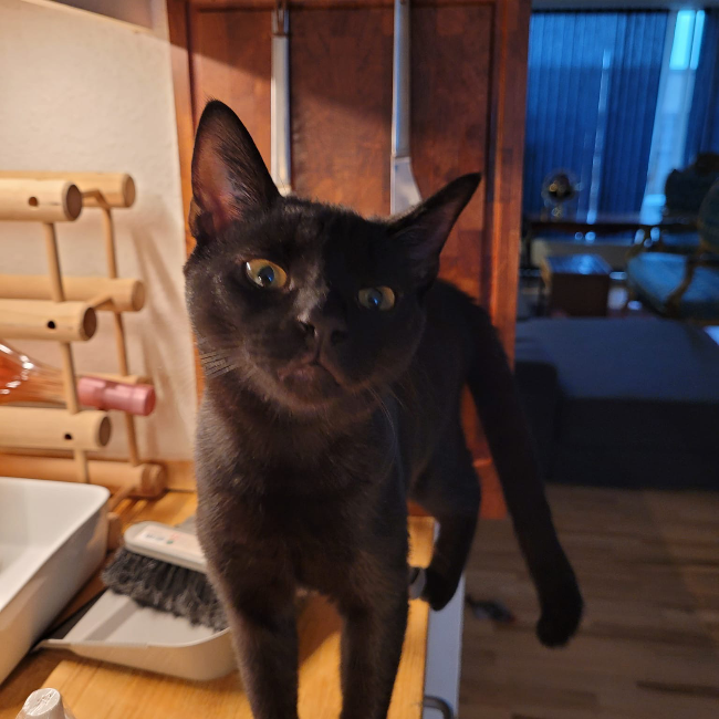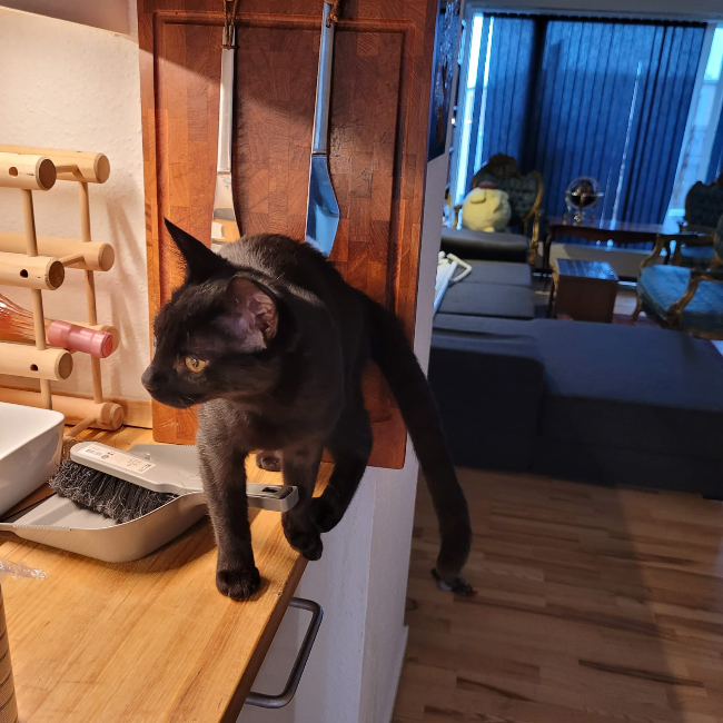 Henny født 27/4-25 er en frisk smuk lille pige panter. Super nysgerrig og legesyg. Når hun lige har set dig lidt an vil hun gerne hilse på dig. Hun er lidt mere forsigtig end søster Gaia. Men en glad og aktiv killing som tydeligvis har en “personality”.